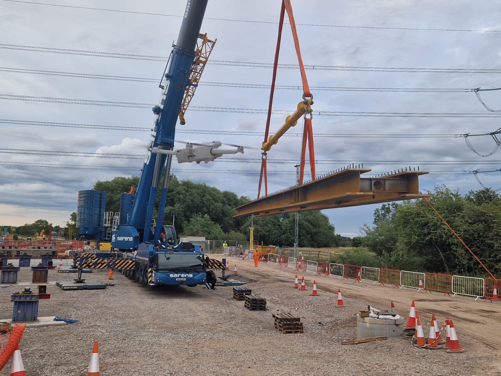 - The images are showing the process and completion of the first bridge launch, in August 2025, carefully winching the new steel beams 26m across the river. With high-voltage overhead cables limiting crane use, this operation demanded millimetre-level precision, meticulous planning & seamless coordination.